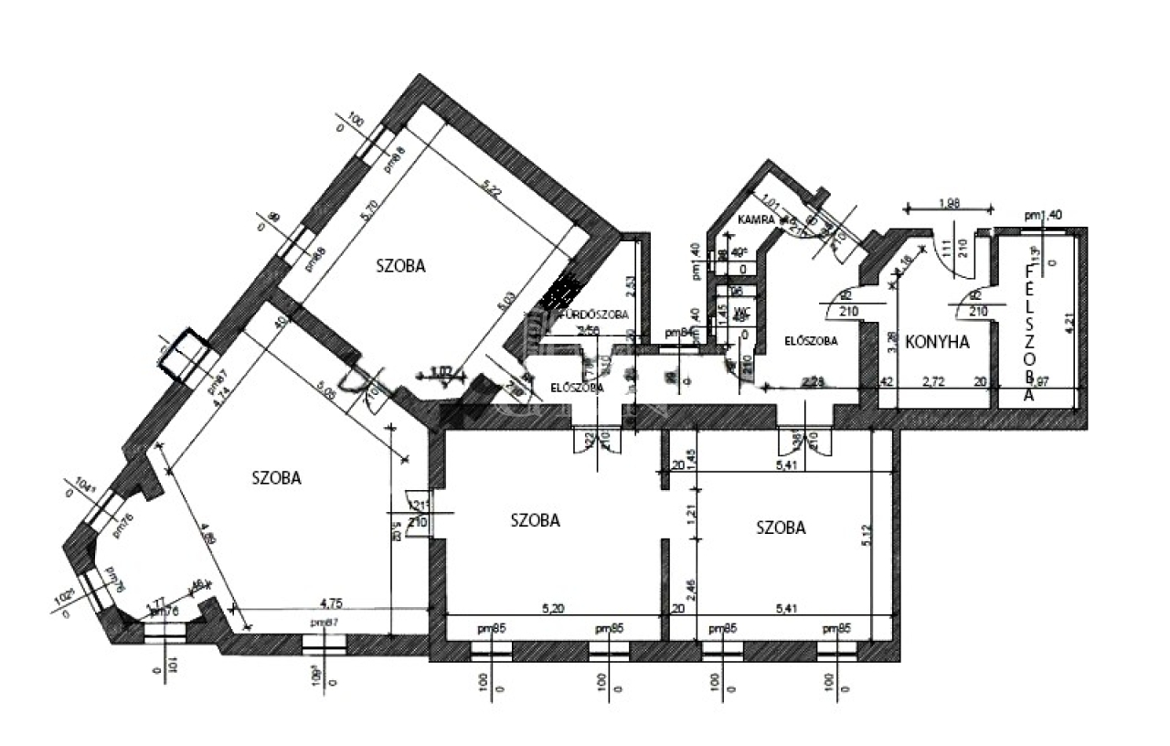 • Tágas helyiségek: az ingatlan négy impozáns méretű szobából (45 m², 30 m², 26 m², 27 m²) és egy 8 m²-es félszoba-méretű helyiségből áll, kiegészülve egy udvari nézetű konyha-étkezővel.