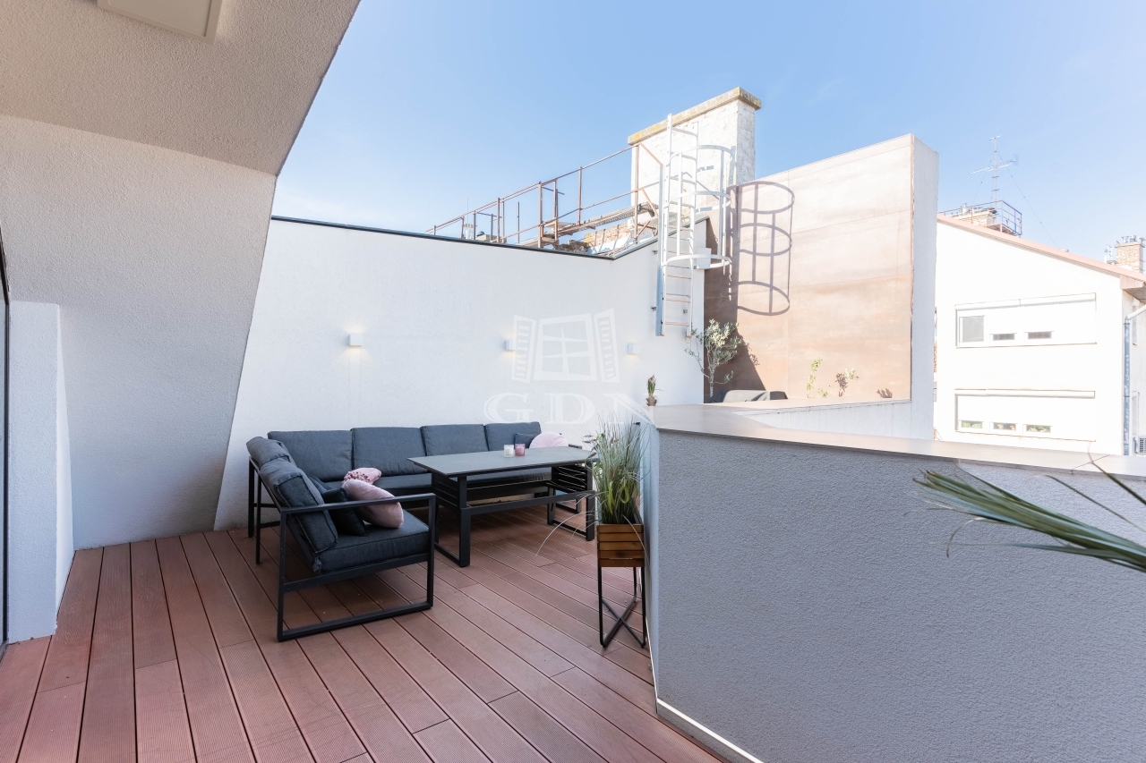 For sale in one of the most sought-after parts of District XII, on Csörsz Street, just steps from MOM Park, a premium-quality, duplex apartment with a terrace and panoramic views of the Buda Castle District.