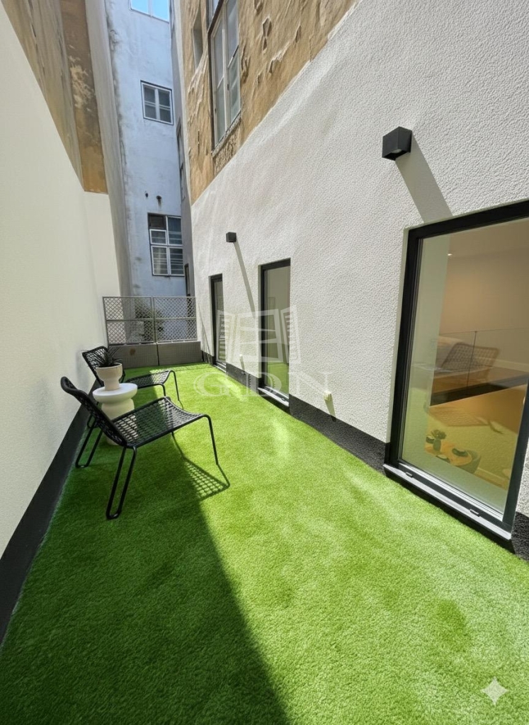 This 104 m², two-level interior apartment with a gallery, featuring a 13 m² terrace /originally a Lichthof/, offers a unique opportunity for those seeking the combination of downtown living and a quiet courtyard location.