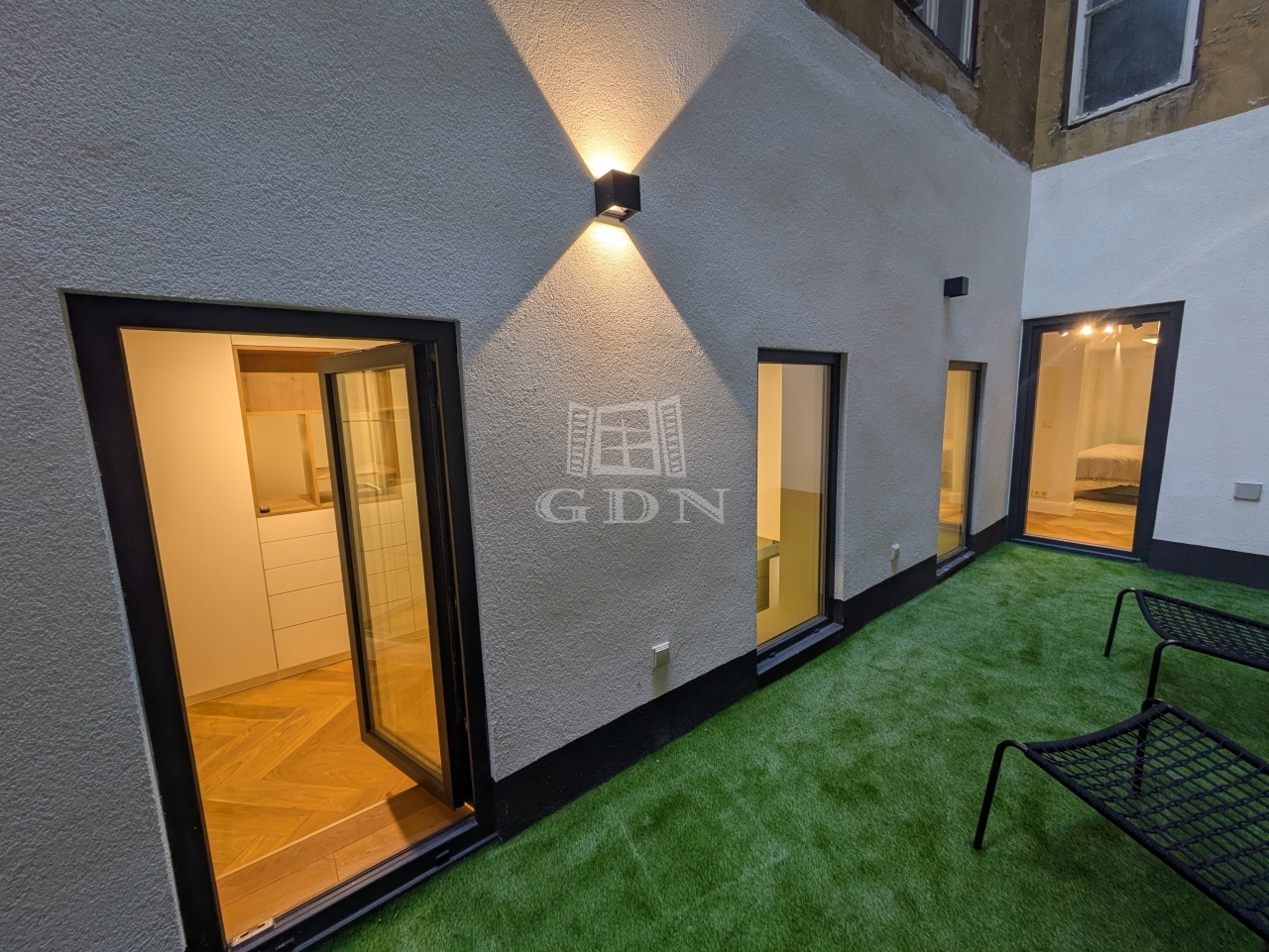 Ez a 104 m²-es, belső két szintes, galériás lakás a 13 m²-es teraszával /eredetileg Lichthof/ egyedülálló lehetőséget kínál a belvárosi élet és a csendes udvari elhelyezkedés kombinációját keresőknek.