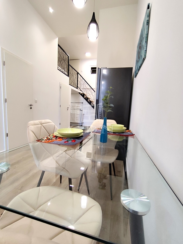 A VII. kerület kedvelt részén, a Dob utca és az Erzsébet körút közvetlen közelében kiadó egy másfél szobás, belső kétszintes, klímás lakás, amely ideális választás egyedülállóknak vagy pároknak.