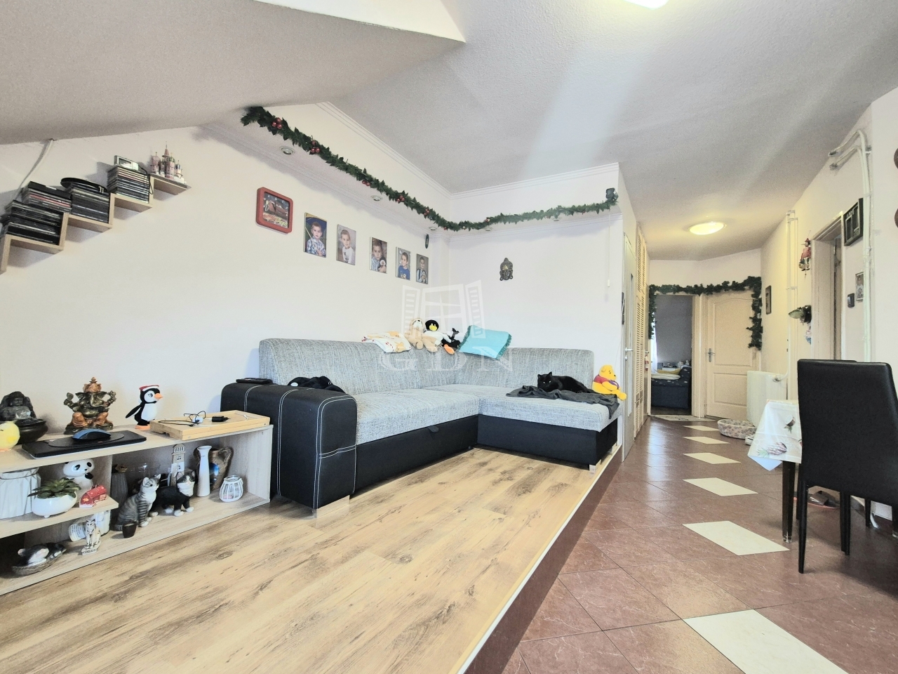 az emeleten egy tágas lakrész,