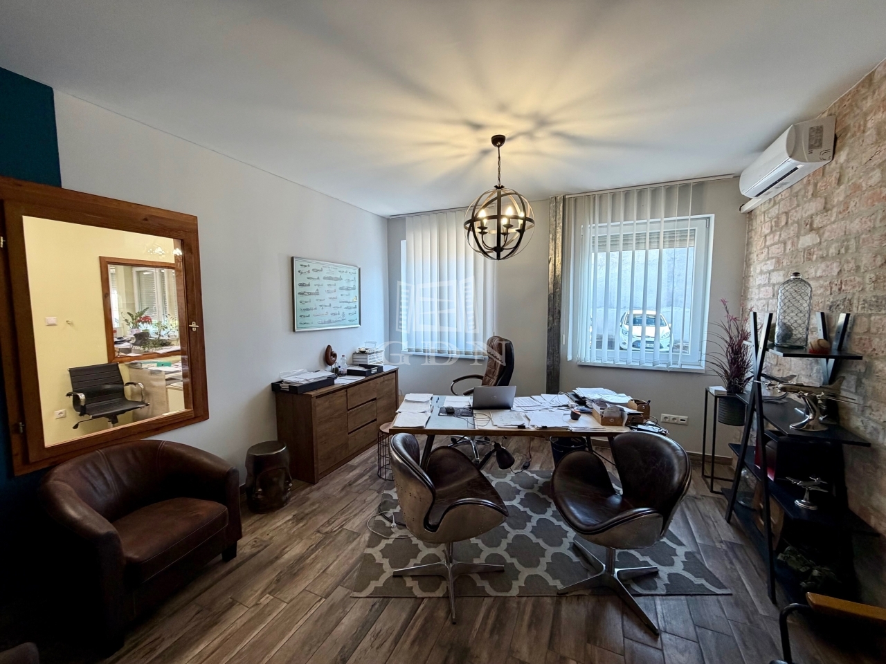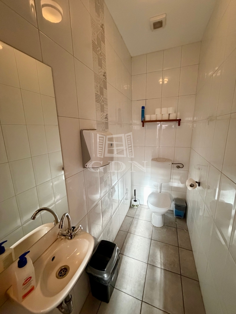 Az ingatlan kiépített szerves része a fent említett 240 m2 több helyiségből álló iroda, teakonyhával, vizesblokkal, öltözővel, amely padlófűtéssel, klímaberendezéssel rendelkezik.