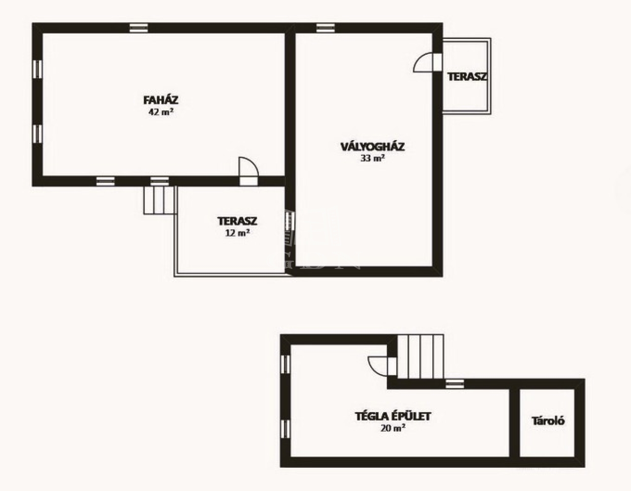 A főépület mellett található, egy teljesen különálló, közepes állapotú 20 nm-es tégla építésű ház. Helyiségei: Előszoba, 1 szoba, fürdőszoba WC-vel és konyha. A szobában hatalmas 60 cm mélységű gardróbszekrény található. A konyhabútor méretre csináltatott.