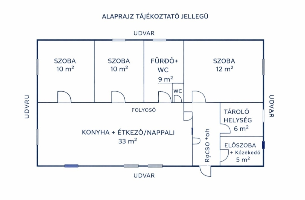3 külön nyíló, kényelmes méretű szoba