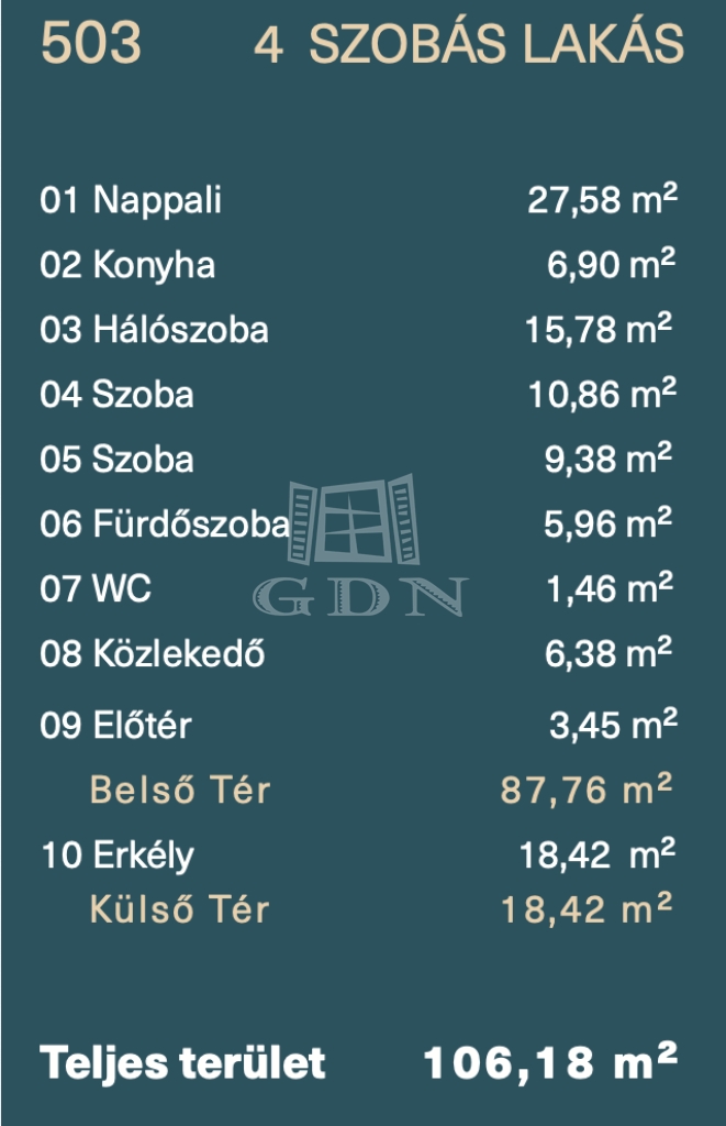 | 87 m2Alapterület | 4 Szoba |