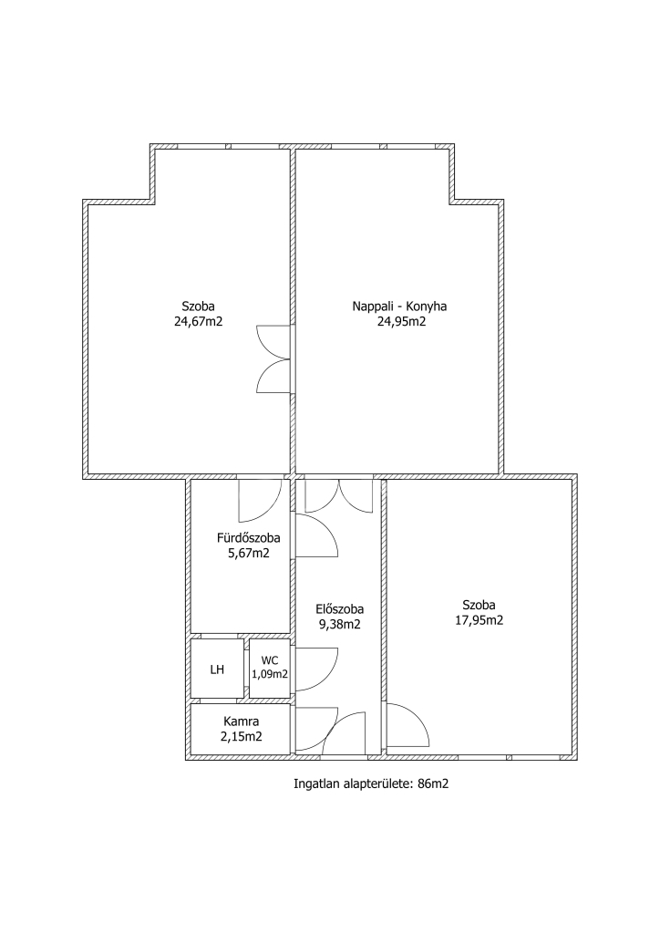 A lakás elrendezése tágas és praktikus, a nagy ablakoknak köszönhetően napfényes és kellemes hangulatú.