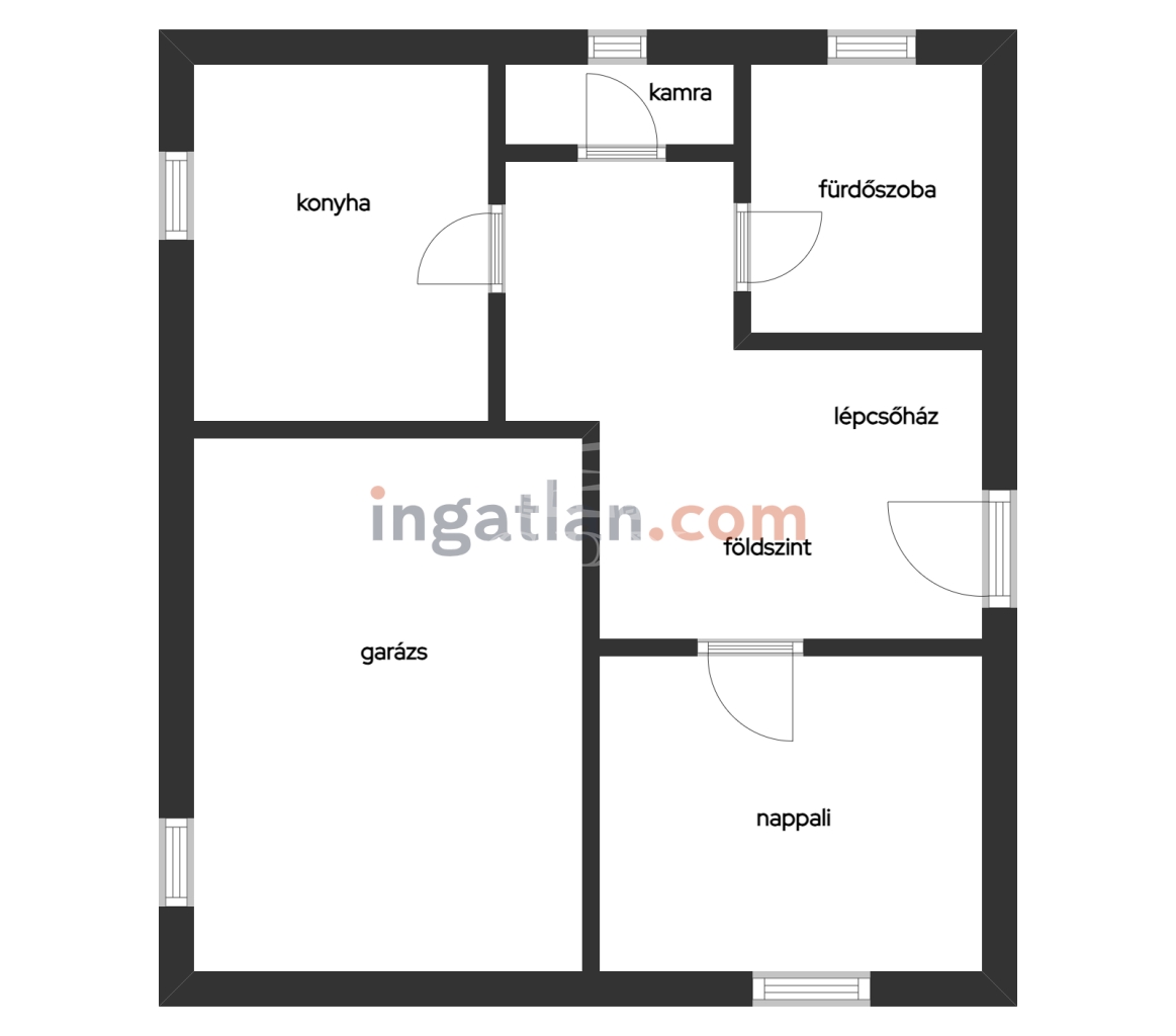 Földszinten 1 hálószoba, konyha, wc, kamra található, mely könnyen kialakítható földszinti lakássá,