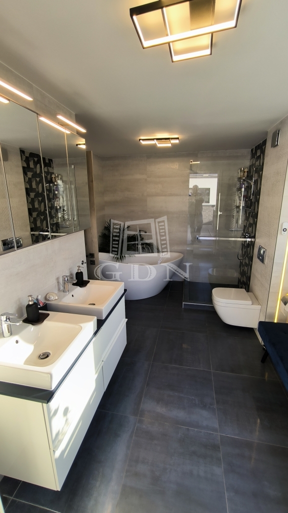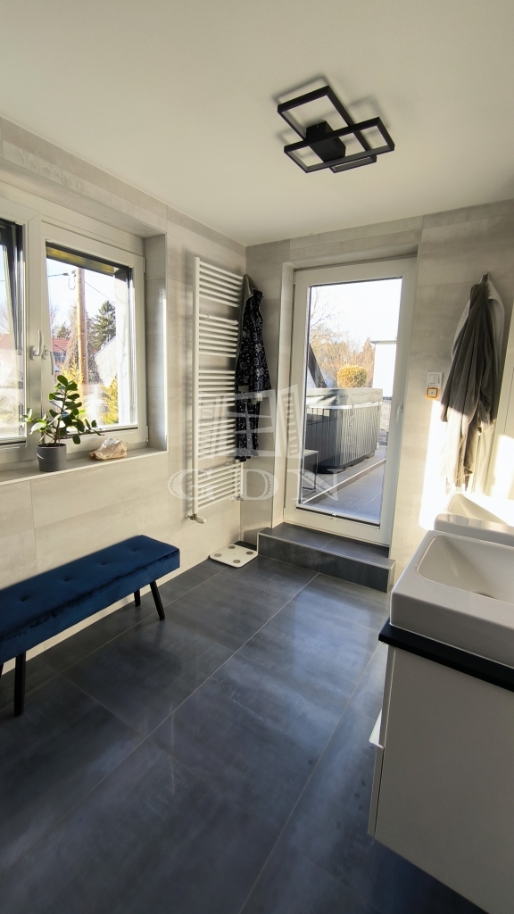 Mind az építési minőség, mind a beépített anyagok, gépészet, burkolatok az építtető jó ízlését és az egyediségre való törekvését tükrözik. Itt minden tűpontosan megfelel a terveknek, az ingatlan állapota valójában ÚJSZERŰ, akár festés nélkül is költözhető. A SZAUNA és a JAKUZZI még használva se volt.