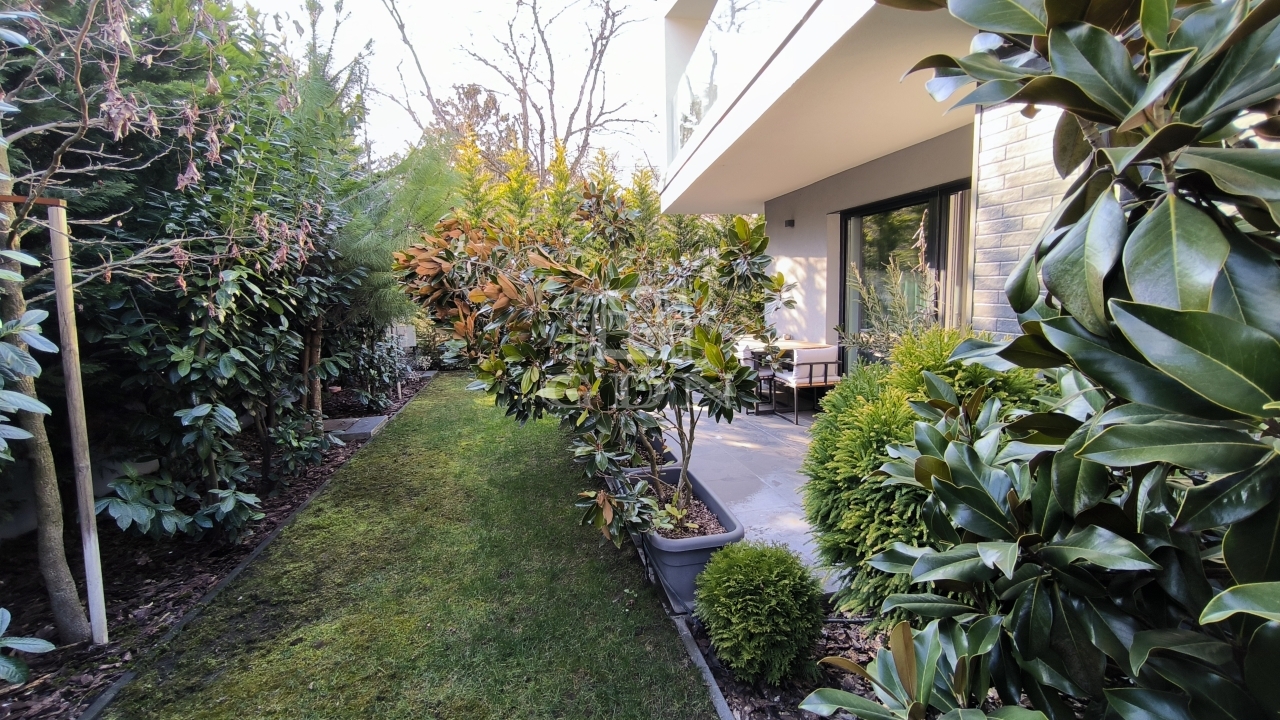 A földszinten az amerikai konyhás nappali mellett van még egy háló és egy fürdőszoba is, a lépcső alatt kis tároló. A nappaliból kilépve érünk a 34 négyzetméteres teraszra, az intimitást biztosító, karbantartott kertbe. Az emeleten 3 háló ( 2 teraszos), egy fürdő és a szauna helység található zuhanyzóval.