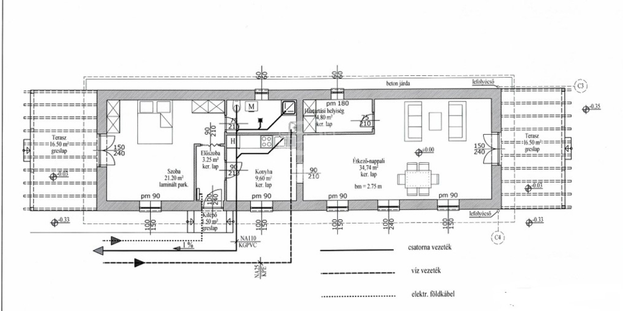 94 m2Alapterület 3 Szoba