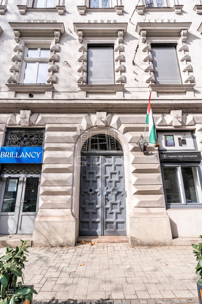A lakás egy klasszikus, kiváló állapotú házban található, az V. és a VI. kerület határán – mindössze 50 méterre az V. kerülettől. A környék Budapest egyik legkeresettebb, patinás része: