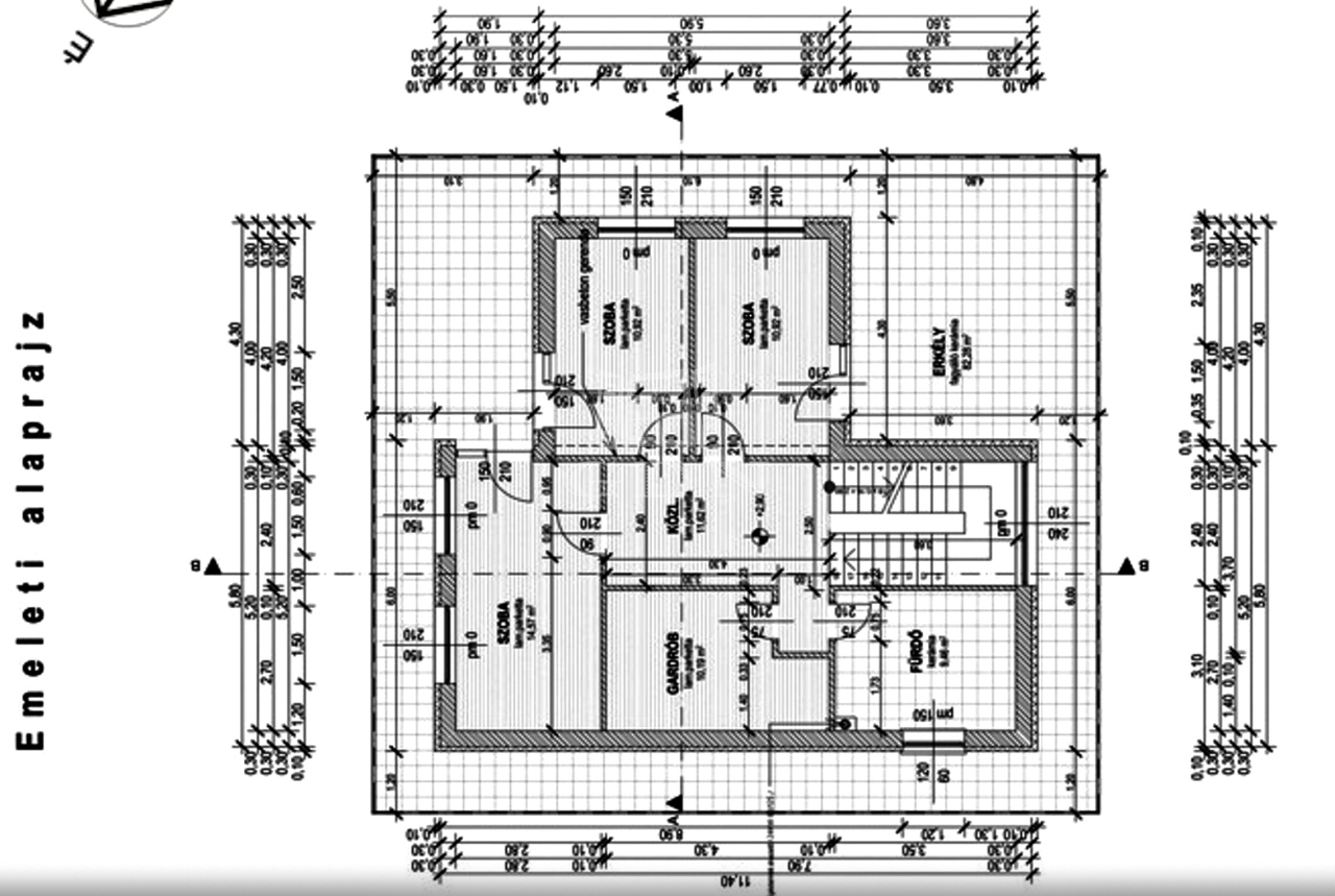 AZ EMELETI SZINTET kényelmes lépcsőkön érjük el, ahol tágas előtér fogad, melyből külön nyílnak a napfényes hálószobák(10,90 m2, 10,90 m2, 14,60 m2) és egy gardrób szoba ami(10,2 m2).