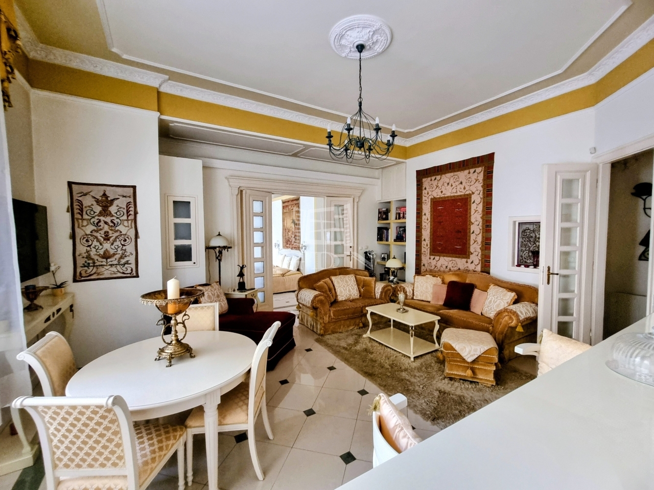 Térkiosztása: bejáratnál klasszikus előszoba/közlekedő fogad minket, ahonnan megközelíthető a káddal és mellékhelyiséggel felszerelt fürdőszoba, továbbá egy vendég mellékhelyiség és az amerikai konyhás nappali ahol a konyha résznél egy kamra is helyet kapott. A nappaliból egy négyszárnyas ajtón bejutva közelíthetjük meg a hálószobát, ahol praktikusan - a tárolást segítő -  átjárható gardrób lett kialakítva. A társasház külső építészeti stílusjegyei szépen harmonizálnak a lakás belső kialakításával, a felújítások során megőrizték a belső ajtókat, a fotókon látható bútorok megállapodás alapján megvásárolhatóak. A kertben egy gépjárműnek felszíni bálló lehetősége állhat rendelkezésre, picében további tárolási lehetőség is megoldott. Mindazoknak ajánlom akik Zugló kiemelt negyedében, kiváló lokációnál keresnek egy stílusos, igényes, kényelmes otthont, valamint azoknal is akik több generációval költöznének, hiszen a szomszéd 86 nm-es ingatlan is eladó, amely szintén megtalálható kínálatunkban.