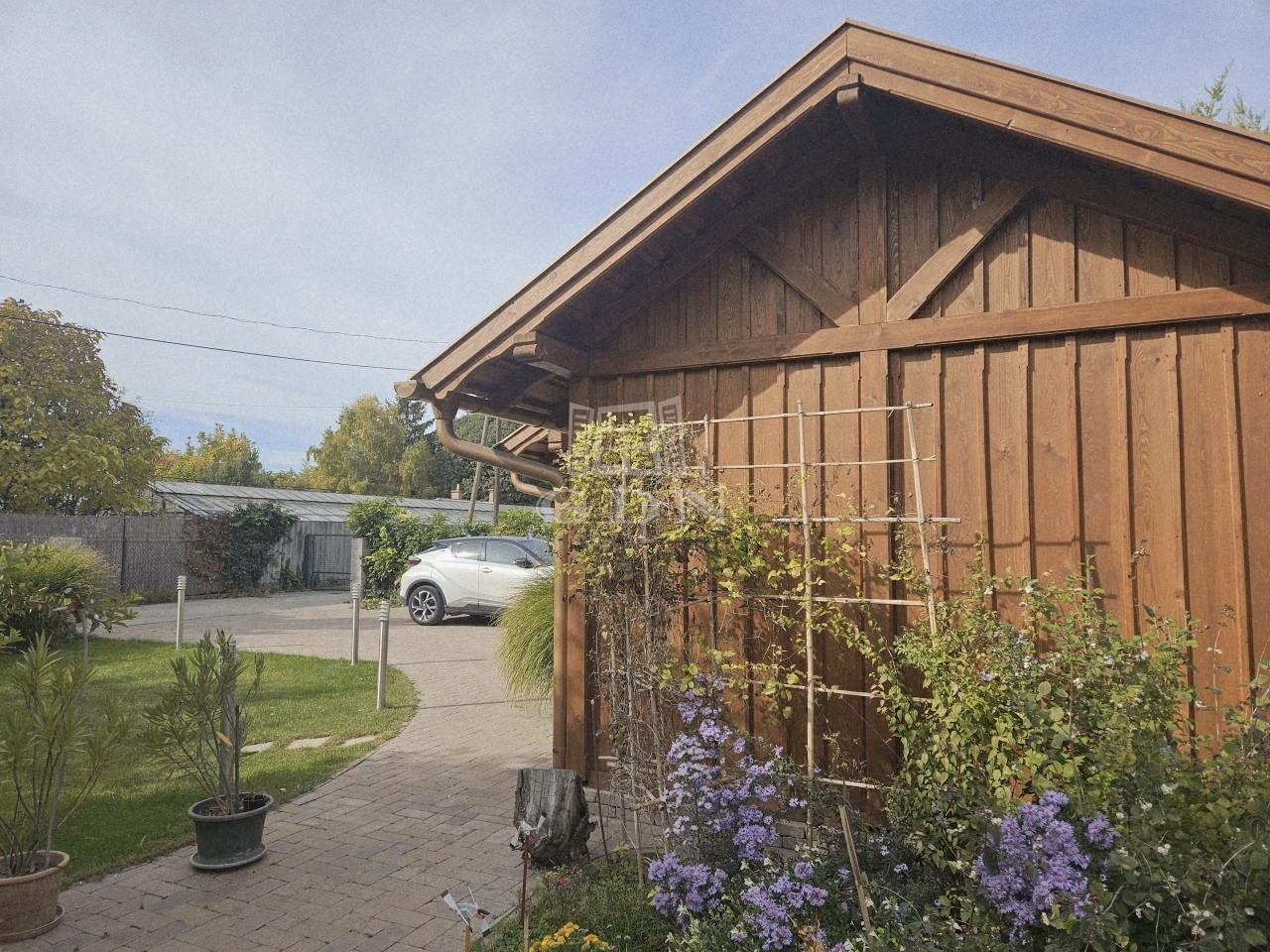 - új két állásos autóbeálló, térkövezett járdák + tároló.