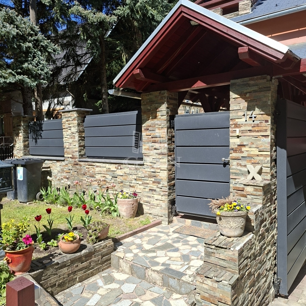 És hogy mitől különleges? Mert nagyon szép kőburkolatokkal látták el, mert ebben a természetközeli ingatlanban jó minőségű fa nyílászárók vannak, nagyon szép falépcsőn tudunk feljutni a tetőtérbe. Mert az udvaron igazán lehet pihenni, azért mert csend van, mert kettő, fedett pihenősarkot is kialakítottak. A szépen gondozott kertben van bőven hely a kertibútorok, napernyők számára így barátokkal és a nagyobb családdal is kényelmesen tudunk kikapcsolódni. Egy kisebb medencében lehet fürdeni, hűsölni meleg napokon. A kerítés is kőburkolat és gondozásmentes kerítéselemekből áll, ezzel teljesen intim szférát hoztak létre. Két utca felől is be tudunk jutni kapun keresztül autóval, a harmadik oldalon pedig személyi bejárat van.