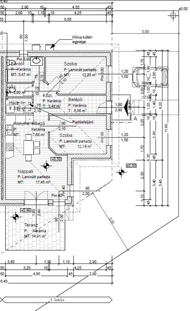 A vízszintes falszigetelés, illetve a padlószigetelés anyaga 1 réteg Icopal E-G 4 F/K bitumenes vastaglemez.