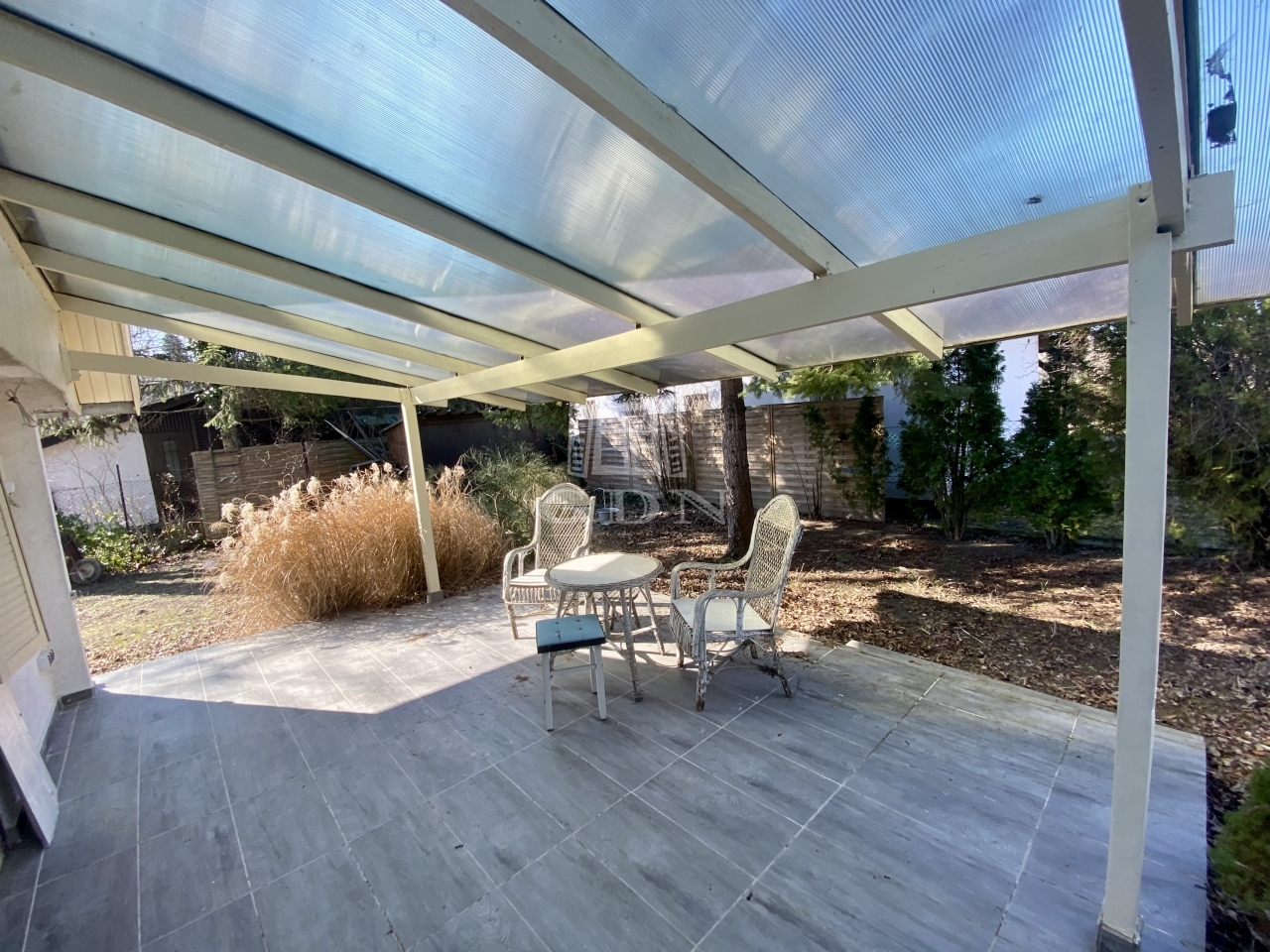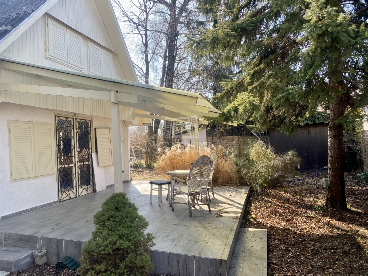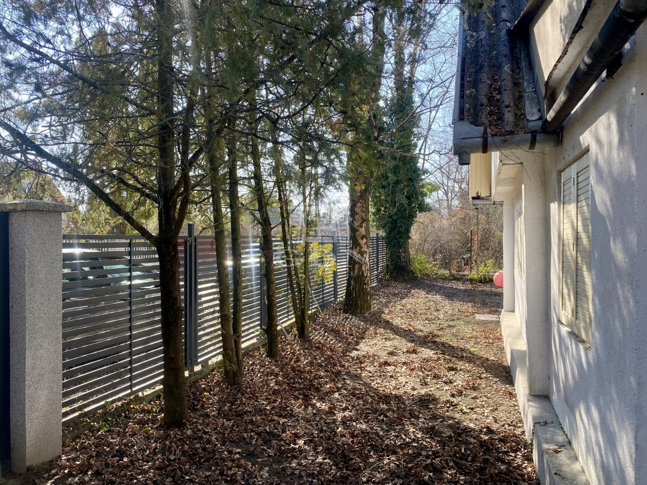 A 370 m²-es telken elhelyezkedő ingatlan alapterülete 78 m², melyhez egy 20 m²-es fedett, kertre néző terasz kapcsolódik — van hogy a reggeli kávét mókusok társaságában élvezheti az ingatlan gazdája.
