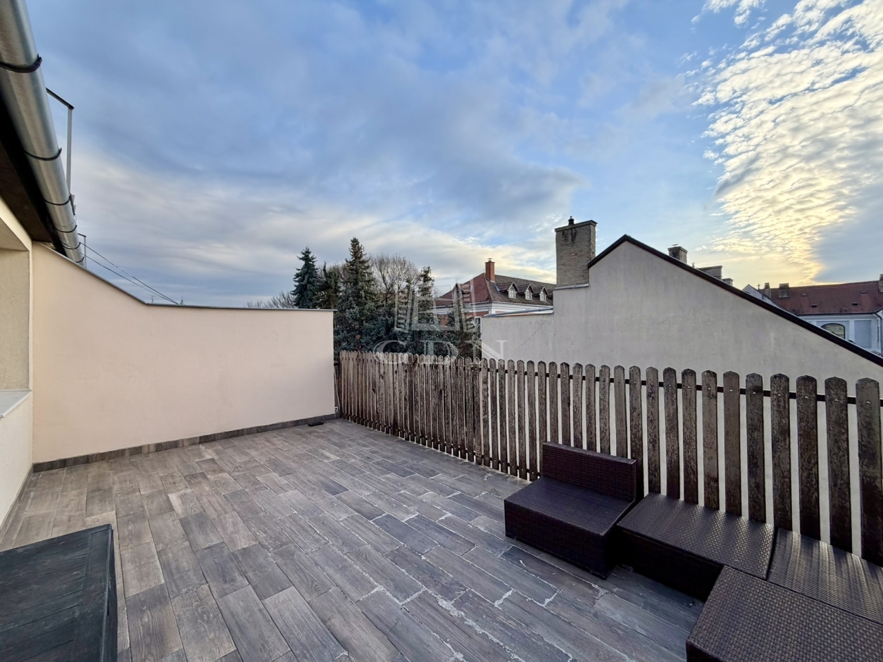 Ez a terület igazi szabadtéri nappaliként funkcionál. A patinás háztetők, tűzfalak és kertek feletti városi panoráma, a lemenő nap fényei adják meg a váci belváros hamisítatlan hangulatát.