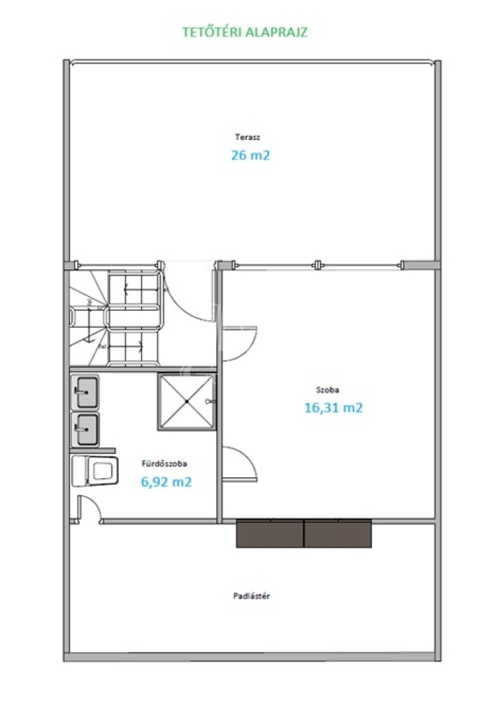 - panorámás terasz : 26 m2,