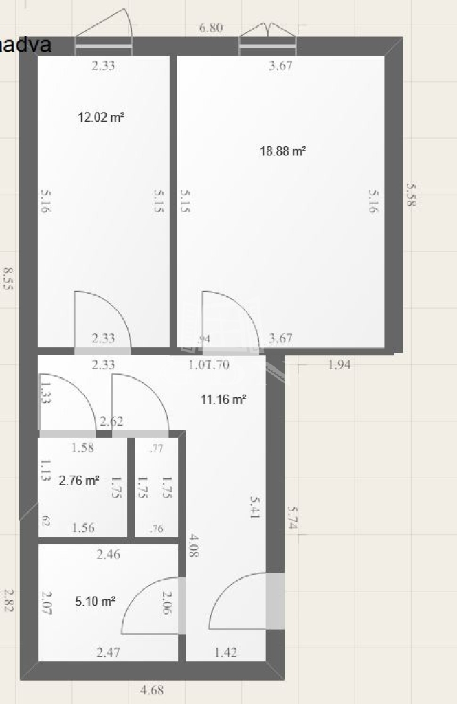 51 m2面积 2 房间