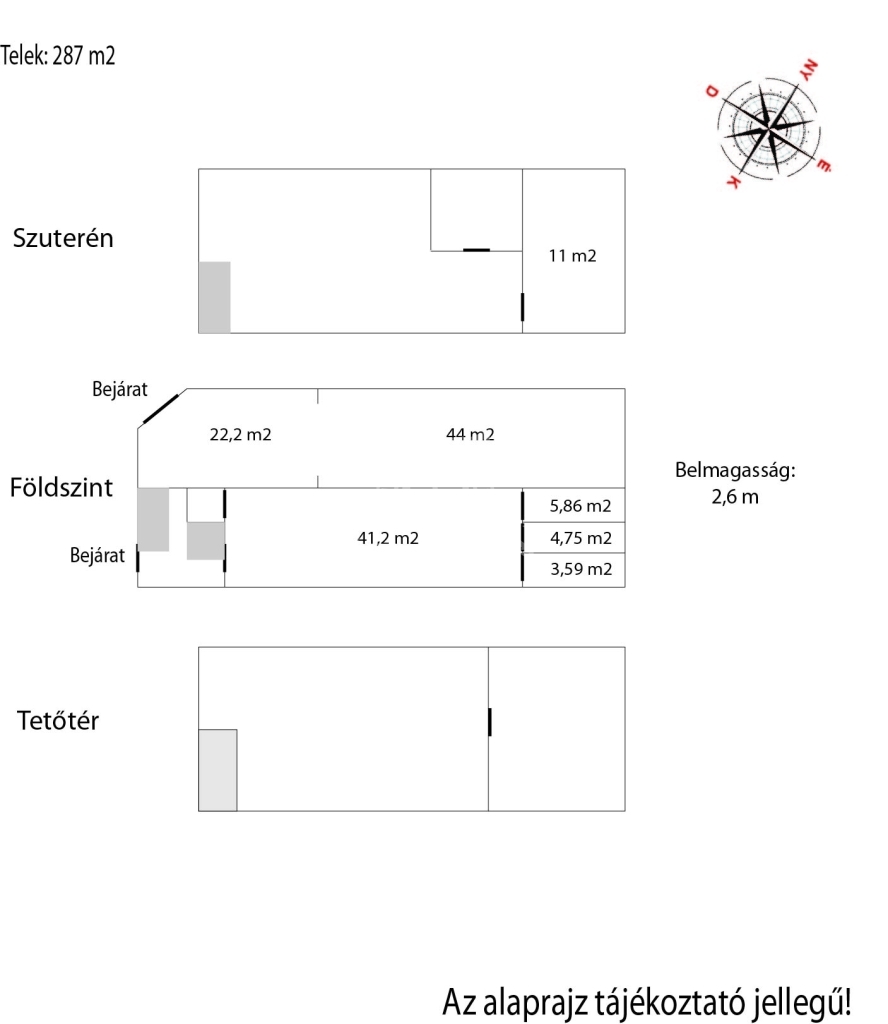 A ház 3 szintből áll, az alaprajzon látható elosztással és egy kis udvarral, ahol ki lett alakítva egy árubepakoló rész ill. akár autóval is beállhatunk.