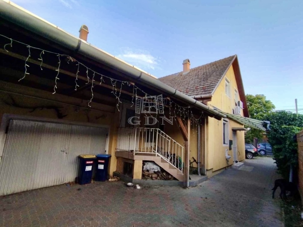 Az ingatlanhoz két kültéri beálló (telken belül) és egy fedett garázs is tartozik.