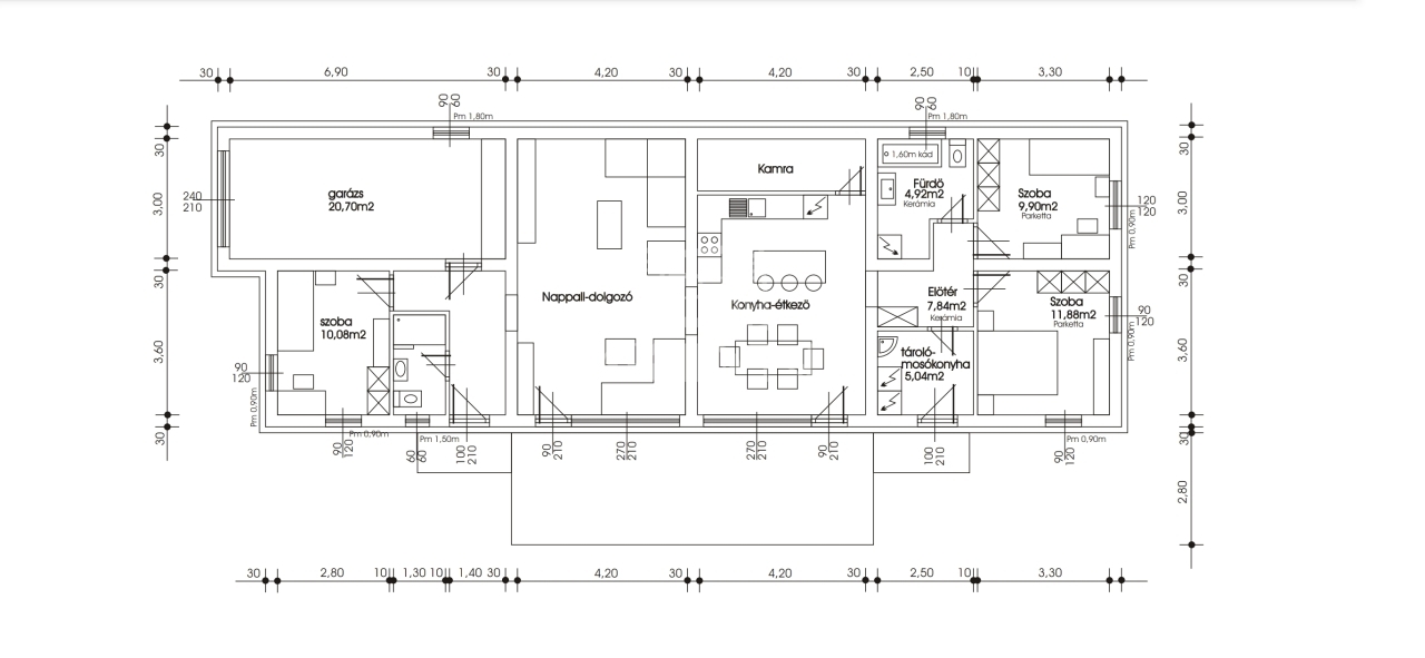 Három jól szeparált szoba biztosít privát teret minden családtag számára, miközben a nappali–étkező–konyha hármasa természetes központként működik. A WC és fürdő rugalmas kialakítása lehetővé teszi, hogy zuhanyzó vagy kád szerint alakítsd a teret, a garázs pedig nem csupán parkolást, hanem tárolást is ad. A nyugati tájolás és a 2,6 m-es belmagasság világos, levegős atmoszférát biztosít, ahol minden pillanat élménnyé válik.