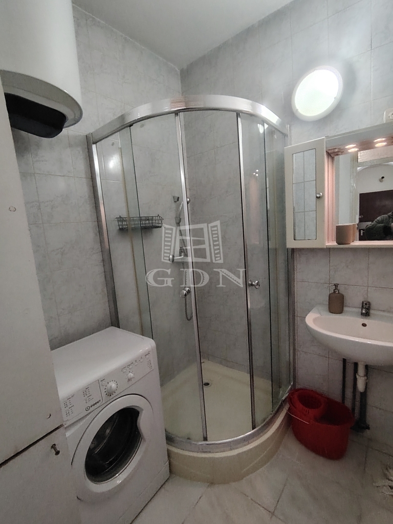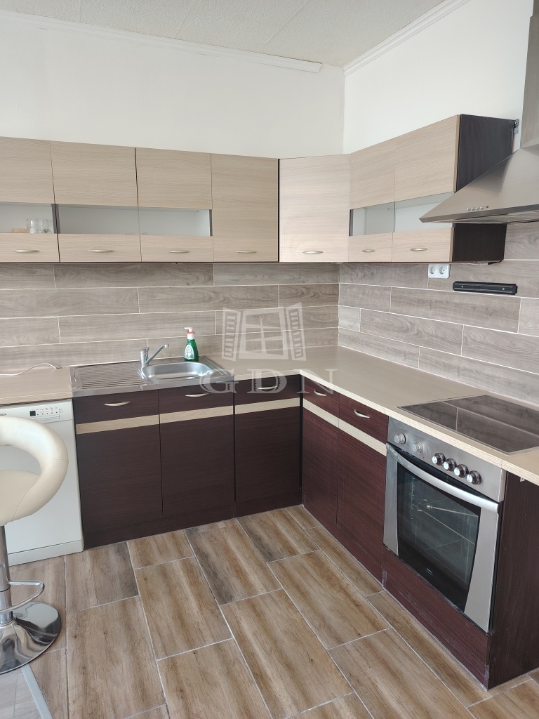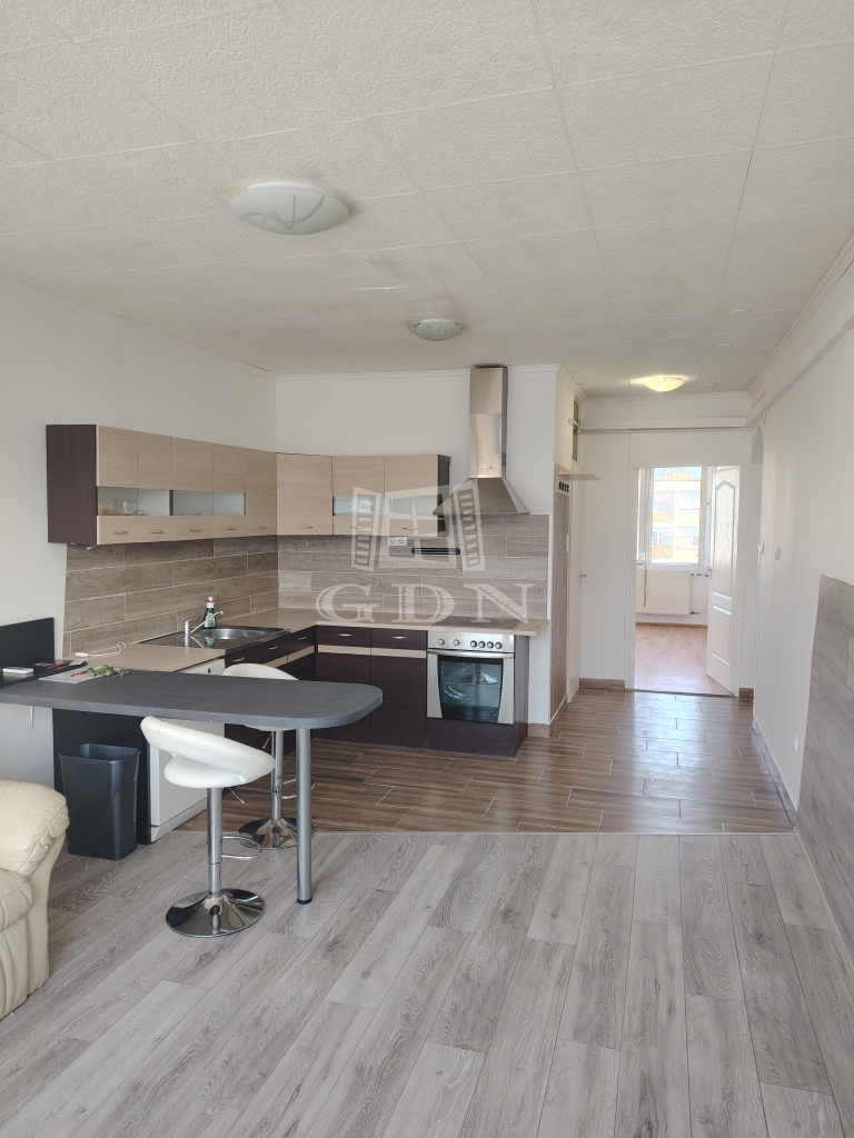 A lakás a 4. emeleten található, kilátással a parkra és az utcára. A lakásban amerikai konyhás nappali került kialakításra, gépekkel felszerelve (hűtő, mosógép, mosogatógép,