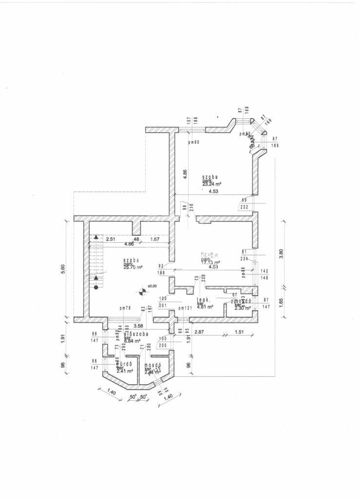 Az ingatlan 4 szobával rendelkezik, 3 szoba a földszinten, 1 pedig az emeleten kapott helyet. A lakás alapterülete 112 m2.
