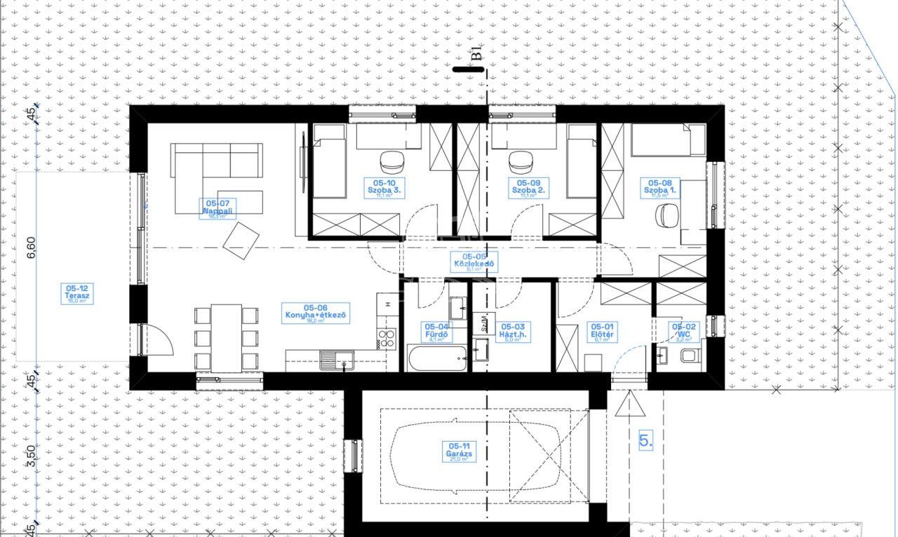 - 4 db földszinti lakás garázzsal + terasszal + saját kertrésszel.