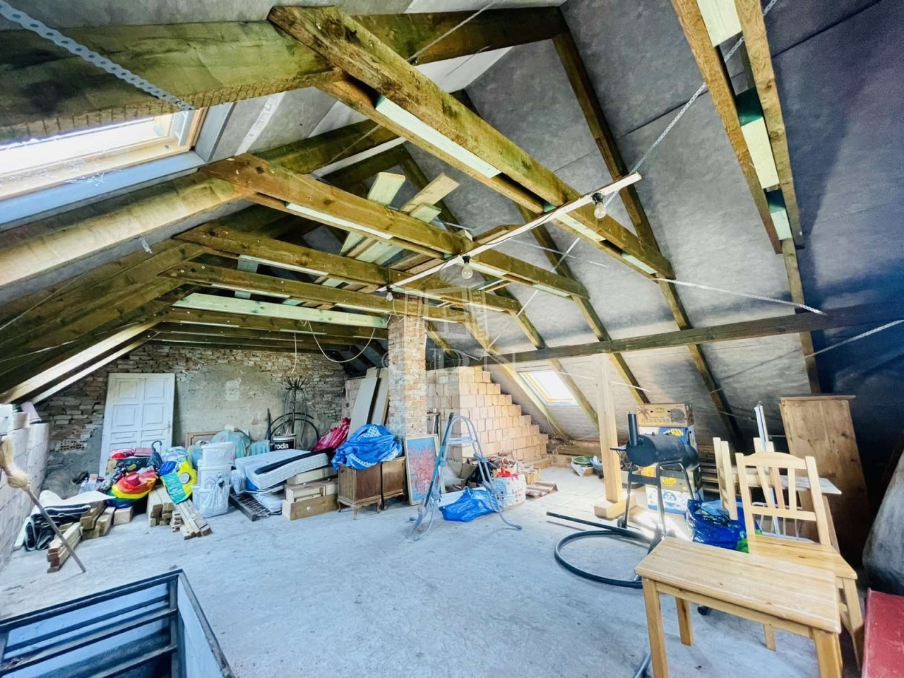 A földszinten már van víz, csatorna, wc, mosdó, az emeleten tetőfelújítás, új tetőablakok beépítése már megtörtént, emeletre vezető külső vaslépcső, kondenzációs cirkó, kémény és gázbekötés elkészült.